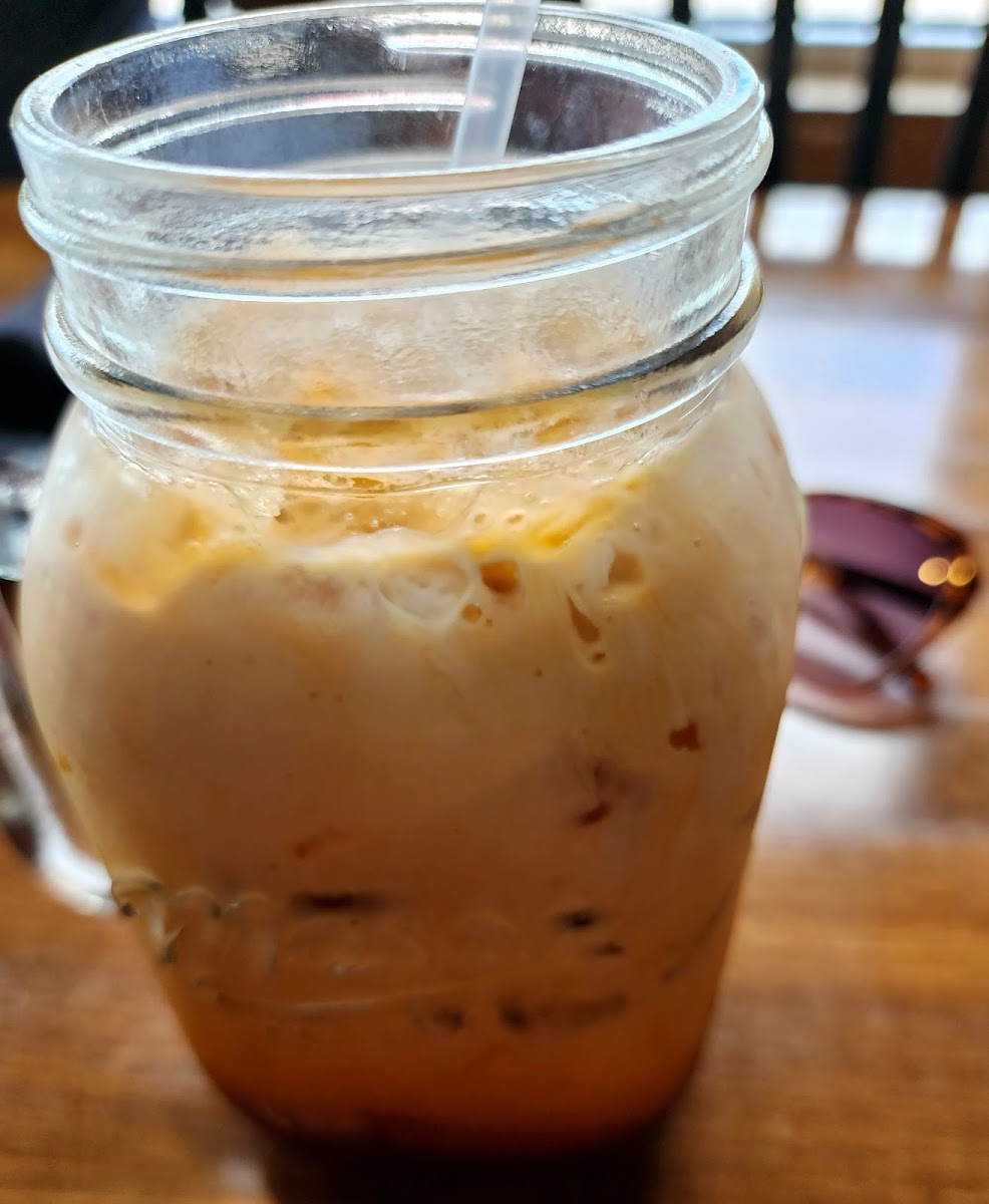 Stopped here to get some school work done and have lunch. Food was phenomenal! I had a Thai iced tea and the yellow curry with chicken.