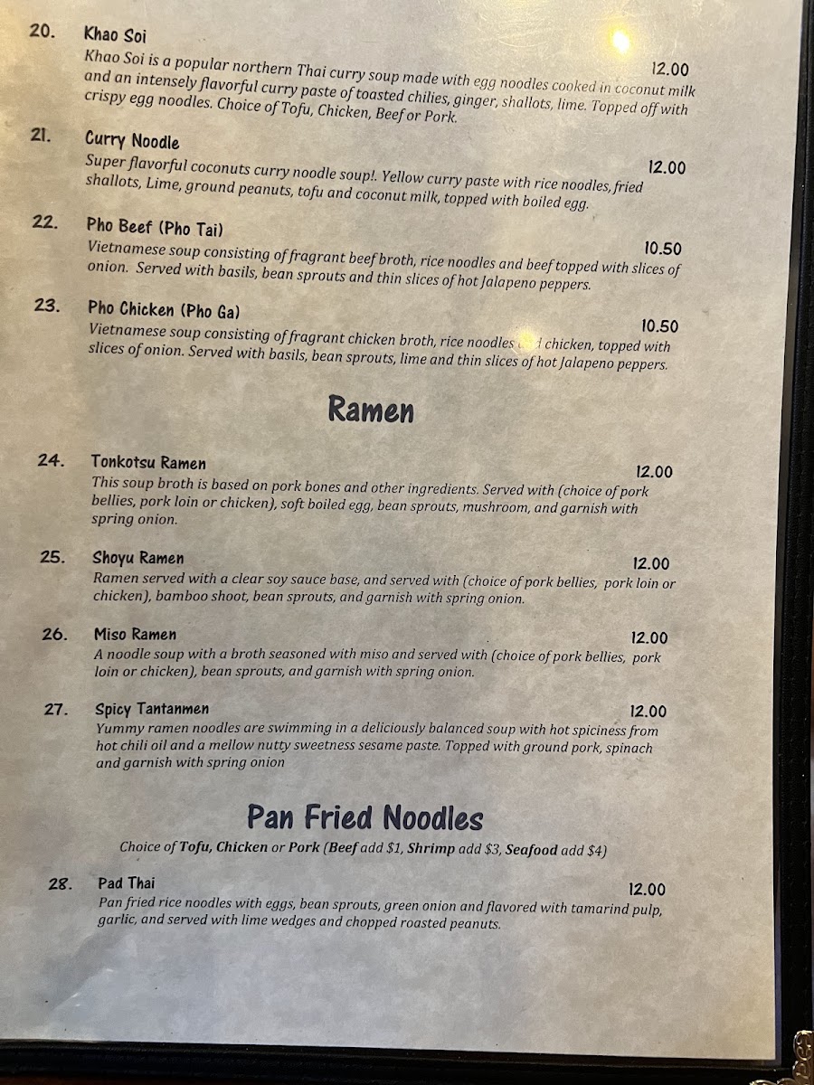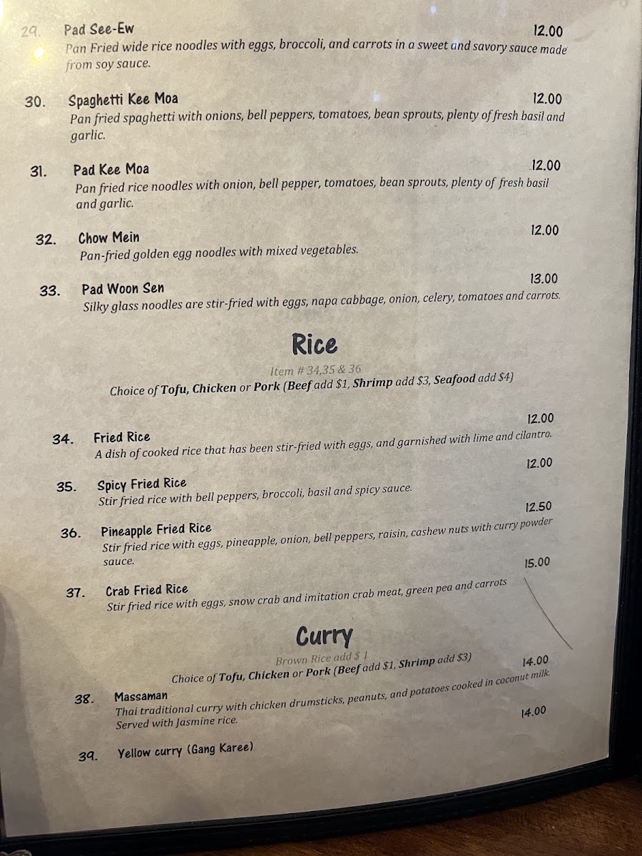Many dishes, like the fragrant massaman curry or spicy tantanmen, fit well with the restaurant’s inviting and open atmosphere, creating an experience that’s easygoing yet satisfying. The food pairs nicely with comforting drinks like Thai iced tea, perfect for a midday break or unwinding after a busy day.